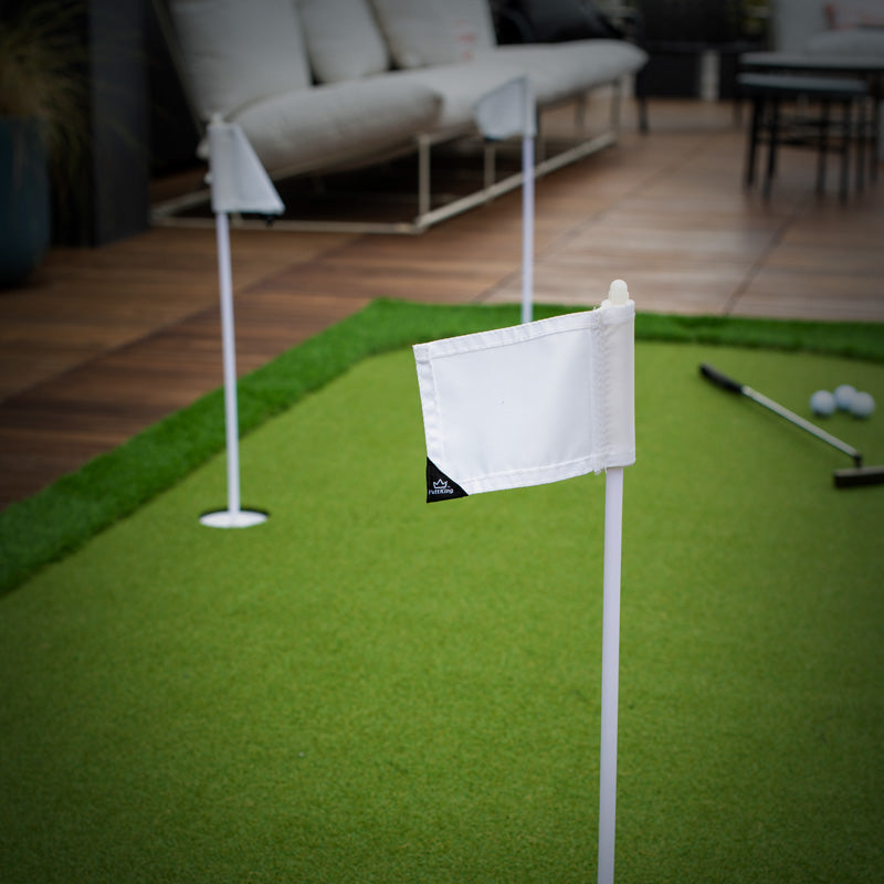 Putt King™ greens feature indoor-outdoor coated nylon flags with reinforced seams, proprietary 23" inch quick-pull flagsticks, and contour slope pads to create various breaks and slope. Our accessories are designed to feel like you're at the club, with minimal assembly required.